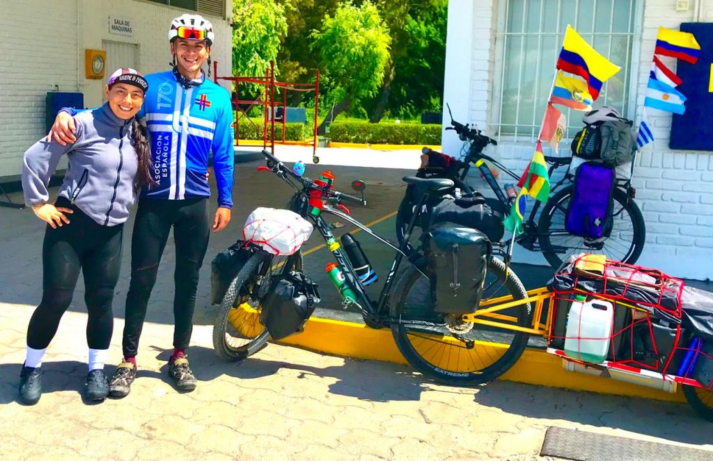 Sebastián y Lina, dos cicloviajeros colombianos que visitaron la costa del partido de Mar Chiquita, Iniciaron su largo viaje hace 19 meses en Bogotá Colombia, pasando por Ecuador, Perú, Bolivia, Brasil, Paraguay, Argentina, Uruguay y ahora de vuelta en la Argentina con destino a Ushuaia! Demostrando que lo que se propone se logra!!!